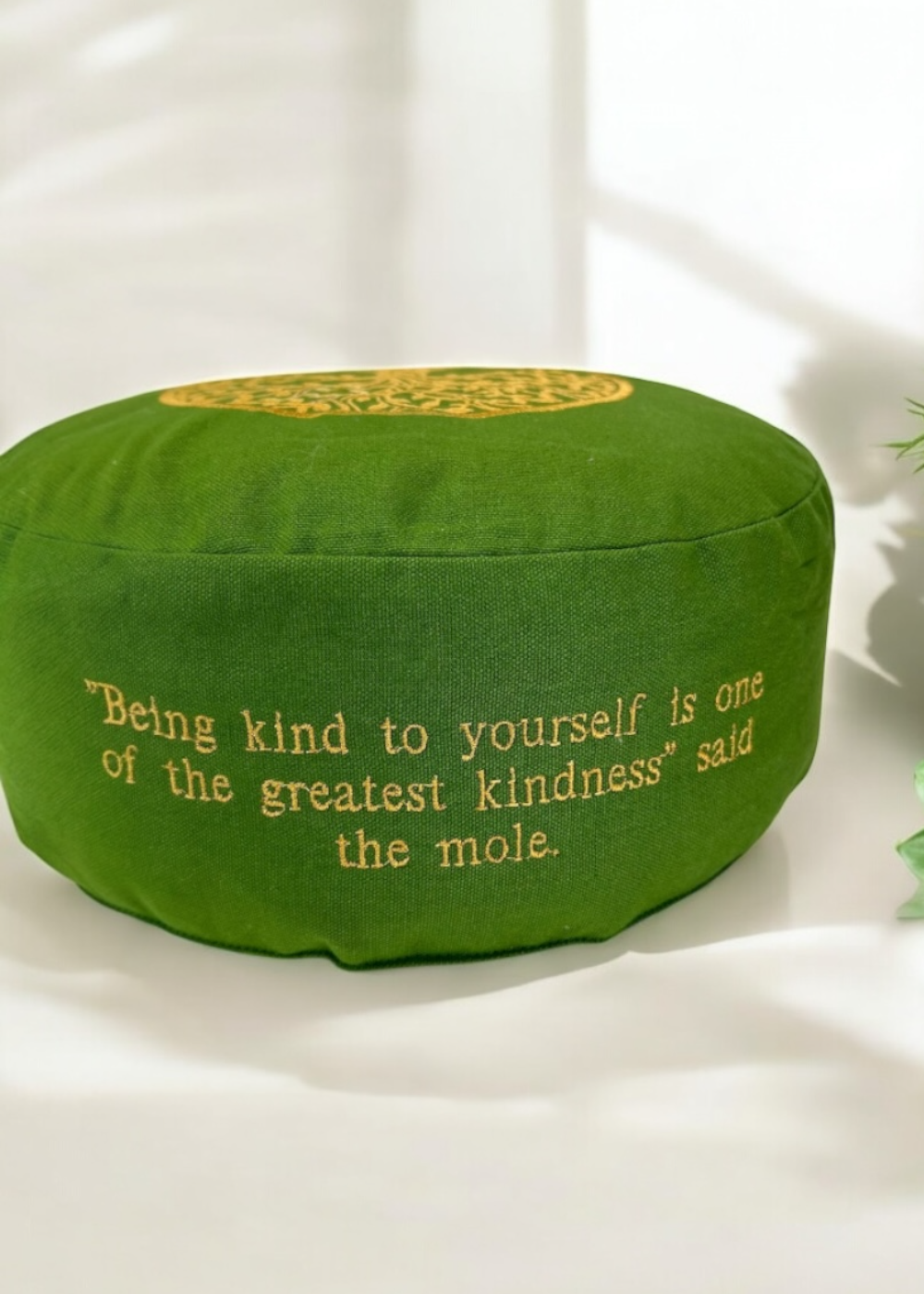Unser Meditationskissen mit gestickter Ahimsa-Stickerei ist nicht nur ein bequemes Sitzkissen, sondern auch ein Symbol für Schutz und spirituelles Wachstum.