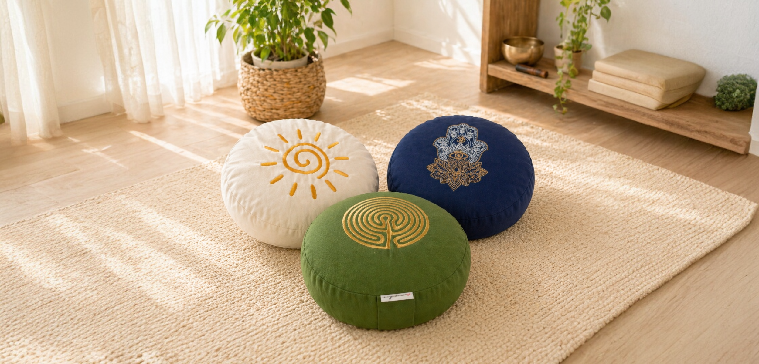 Bringe deine Meditationspraxis auf ein neues Level mit unseren exklusiven Meditationskissen. Ob die strahlende Sonnenstickerei, die schützende Hamsa oder das tiefgründige Labyrinth – jedes Kissen ist ein Ausdruck von Handwerkskunst und spiritueller Bedeutung. Perfekt als persönlicher Begleiter oder als besonderes Geschenk für deine Liebsten.