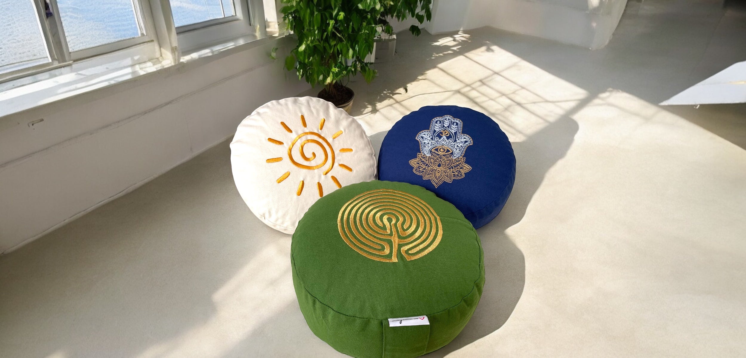 Bringe deine Meditationspraxis auf ein neues Level mit unseren exklusiven Meditationskissen. Ob die strahlende Sonnenstickerei, die schützende Hamsa oder das tiefgründige Labyrinth – jedes Kissen ist ein Ausdruck von Handwerkskunst und spiritueller Bedeutung. Perfekt als persönlicher Begleiter oder als besonderes Geschenk für deine Liebsten.
