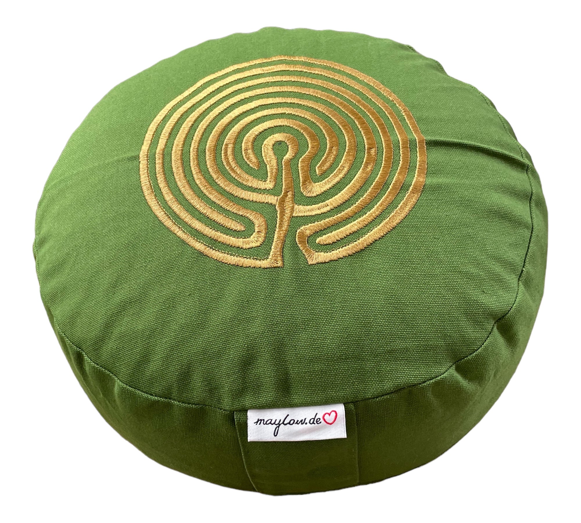 Erlebe eine tiefere und entspannende Meditation mit unserem exklusiven Meditationskissen, das mit einem kunstvoll gestickten Labyrinth-Motiv verziert ist.