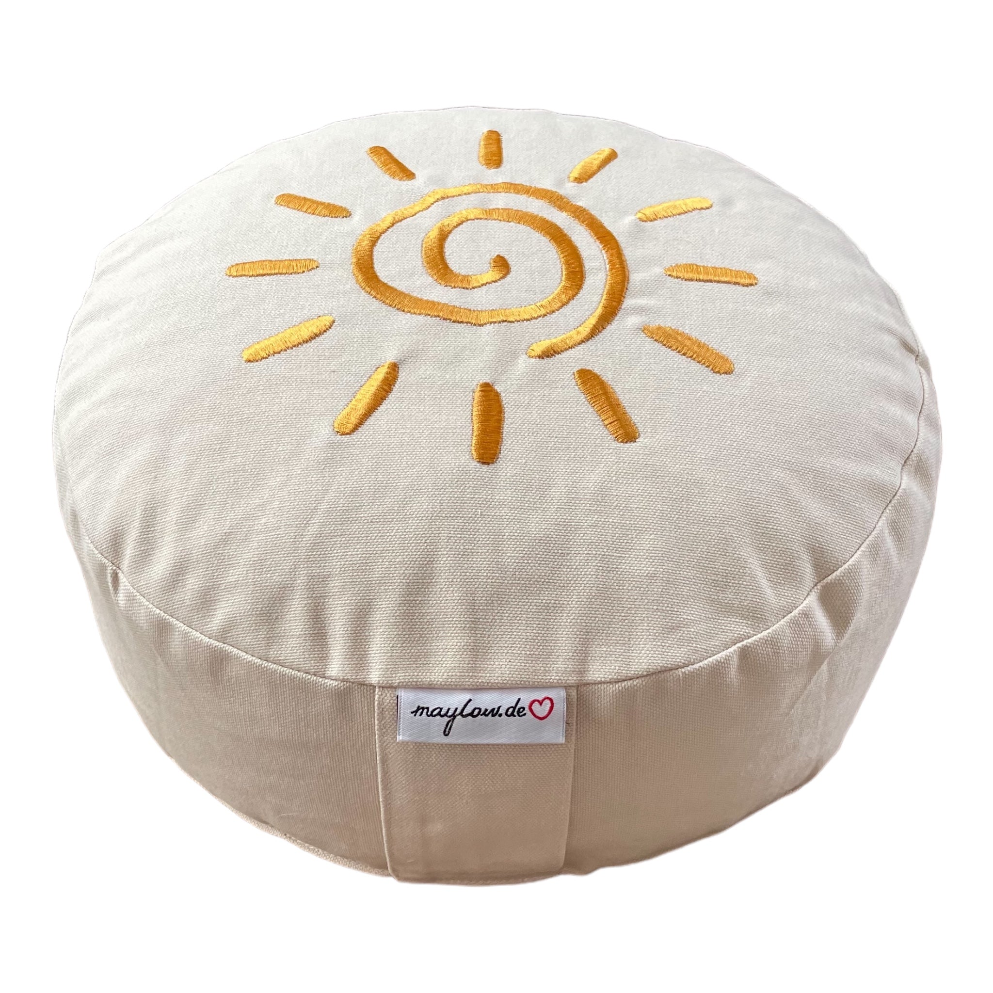 Das Meditationskissen mit gesticktem Sonnenmotiv ist mehr als nur ein Sitzkissen. Es ist ein Symbol für deine Reise zur inneren Ruhe und Achtsamkeit. Egal ob Anfänger oder erfahrener Meditierender, dieses Kissen unterstützt dich dabei, tiefer in deine Meditation einzutauchen und eine Oase der Ruhe in Ihrem Alltag zu schaffen.